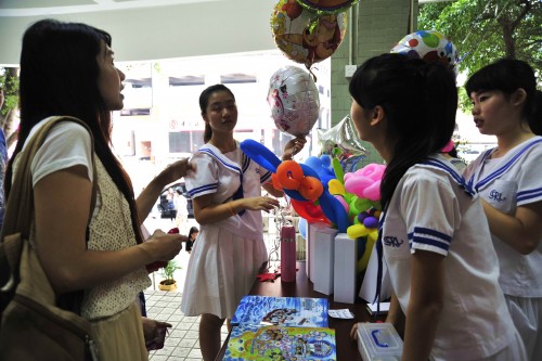 To share the joyfulness of our school anniversary, the Open Day was held in the afternoon, welcoming public to visit our campus. Students and teachers working together set up booths and exhibitions for the event, which proved to be an excellent opportunity for the students to hone their sense of responsibility. The campus was brimming with happiness and excitement. Every corner was full of surprises and fun. Balloons and gadgets were prepared by the Economics Club outside the school door and beautiful plants were sold by the Ecology Club. Tasty snacks and drinks were sold at the Home Economics Room. Furthermore, there were displays of students’ artwork and photo collages capturing bits and pieces of school history. The Hall was one of the most popular spots during the day as there were amazing dance performances by Break Ice Dance Team and beautiful songs by the secondary choir. The day was wrapped by the joyfulness of a lucky primary 4 student who won the TV in our grand lucky draw.