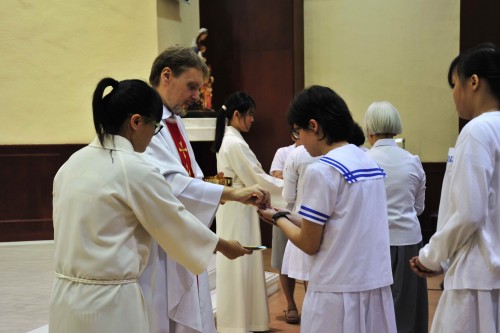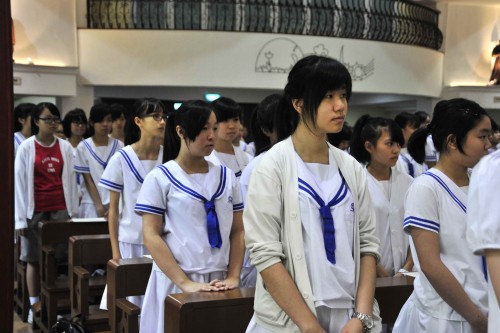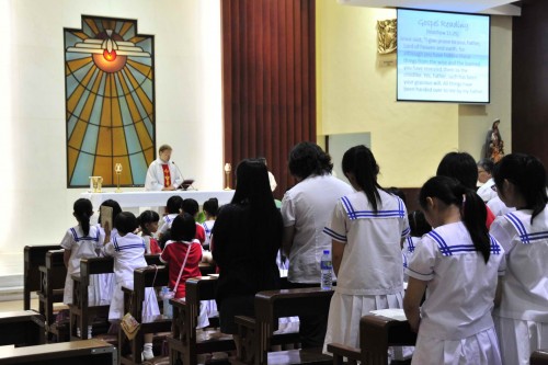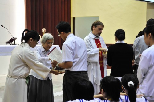 Catholic students, class representatives and all staff members attended the mass held in the chapel after the Celebration. The mass was filled with the beautiful songs rendered by our secondary choir and the grateful prayers led by the priest, sisters and all Catholic teachers and students. The mass ended with happiness at 12:00 pm.