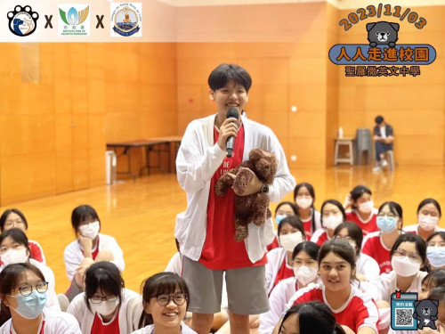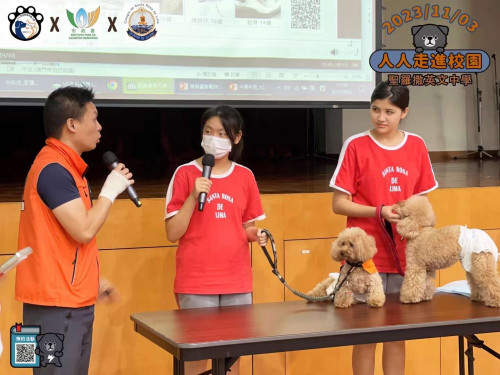 日前(11月3日),本澳非牟利動保團體「人人流浪狗澳門義工團」以及澳門市政狗房的獸醫團隊應邀蒞臨本校舉辦「人人走進校園」系列活動。活動過程包括義工團隊準備的生命教育講座,市政狗房的獸醫團隊也向學生們普及了領養和照顧小動物的注意事項。期間,學生也得以和動物義工近距離接觸,第一身體驗到和小動物互動的樂趣。