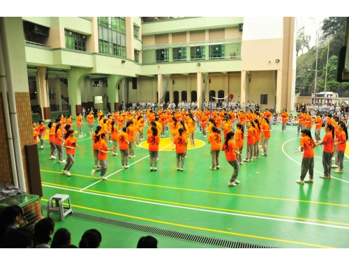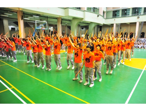 That morning, all secondary students gathered in the playground. Each level wore its own specially designed level shirt and prepared its own set of props. All students were energized by other level performances as they readied themselves for their own cheering performance. Each level tapped into their creativity and came up with unique formations, executed to perfection as they chanted their level cheer. The most impressive formation that day was that of the Form 6 students who formed themselves into a large number “6” as well as the word “six,” spanning the entire playground.