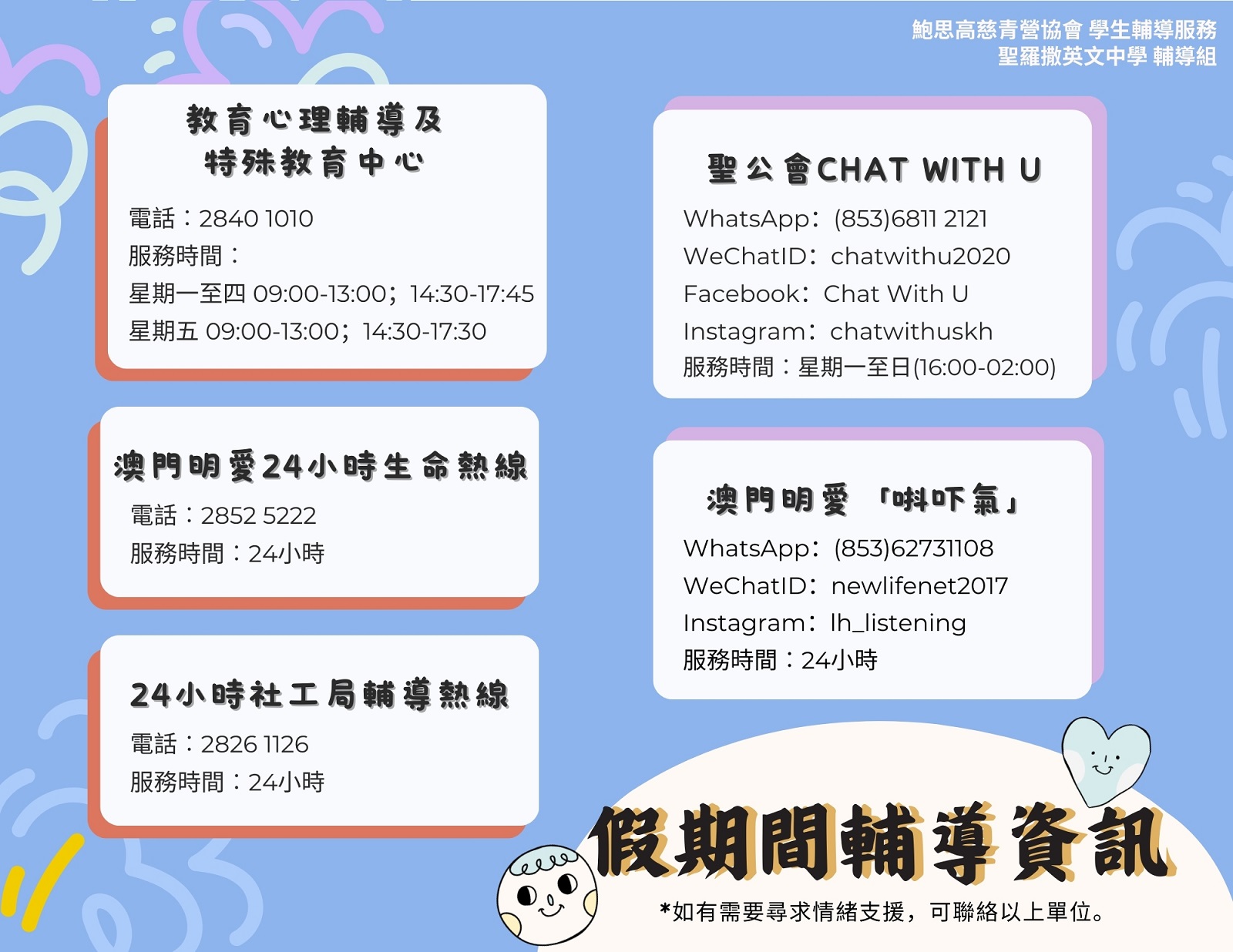 輔導組聖誕家長單張 - 假期間輔導資訊