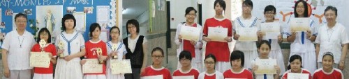 On the 8th of March, 2010, the academic awards were given to deserving students from the Primary 1 to Form 4 Classes .After half-a-year's work, these students received their report cards from Sister Judith and Ms Candy as the rest of the students watched the ceremony through the TV. The simple ceremony honoured their efforts and gave them the encouragement to pursue even higher goals. Sister Judith, our principal, also took the opportunity to encourage everyone to continue to work hard during the second half of the year.