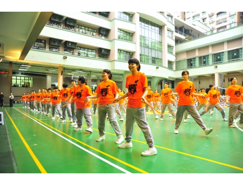 That morning, all secondary students gathered in the playground. Each level wore its own specially designed level shirt and prepared its own set of props. All students were energized by other level performances as they readied themselves for their own cheering performance. Each level tapped into their creativity and came up with unique formations, executed to perfection as they chanted their level cheer. The most impressive formation that day was that of the Form 6 students who formed themselves into a large number “6” as well as the word “six,” spanning the entire playground.